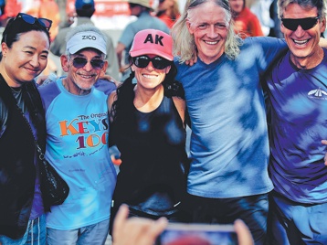 Bob Becker, Andrea Kooiman, Greg Pressler, Danny Westergaard (from second left) pose for a photo during the race. CHINA DAILY