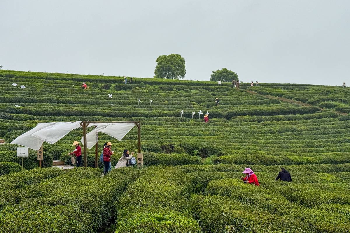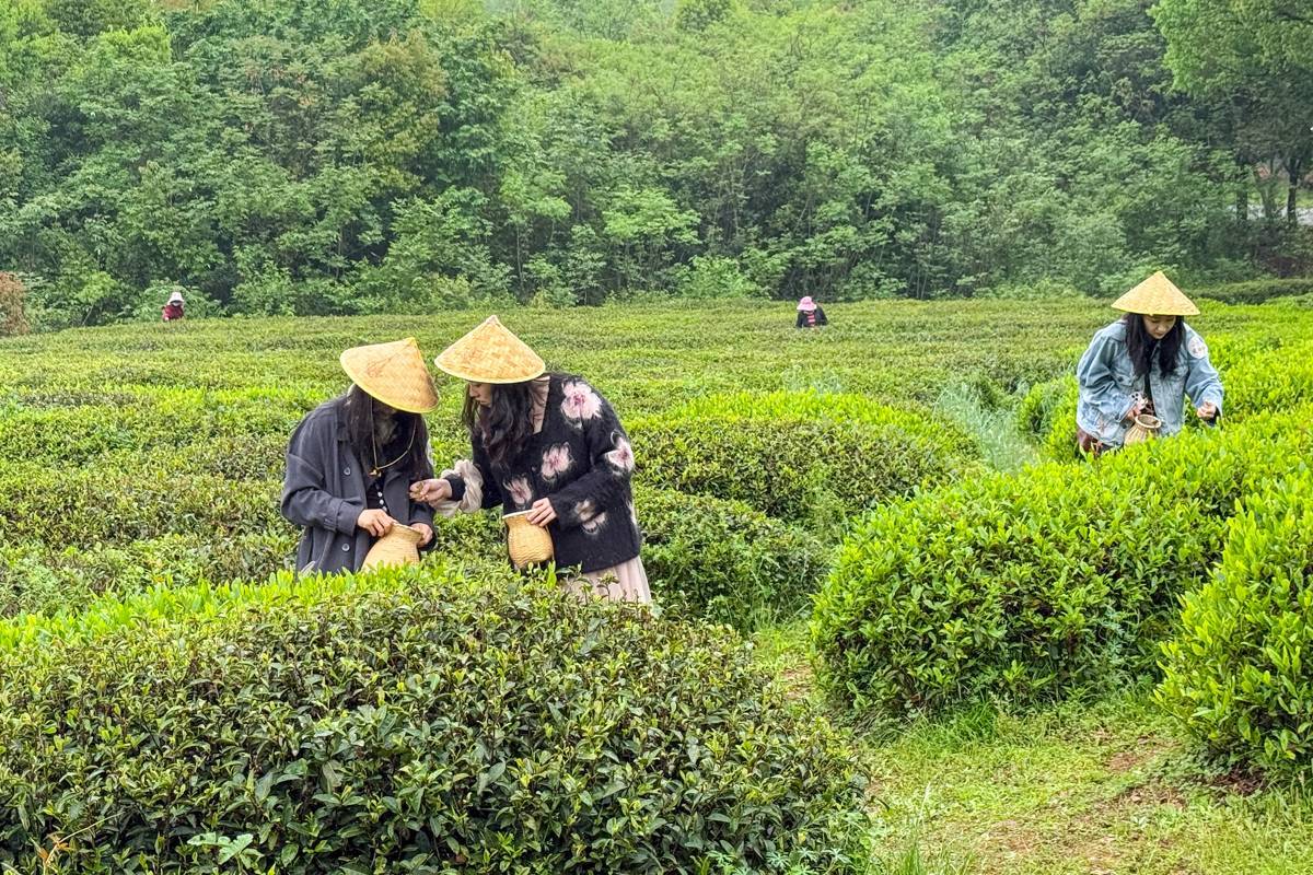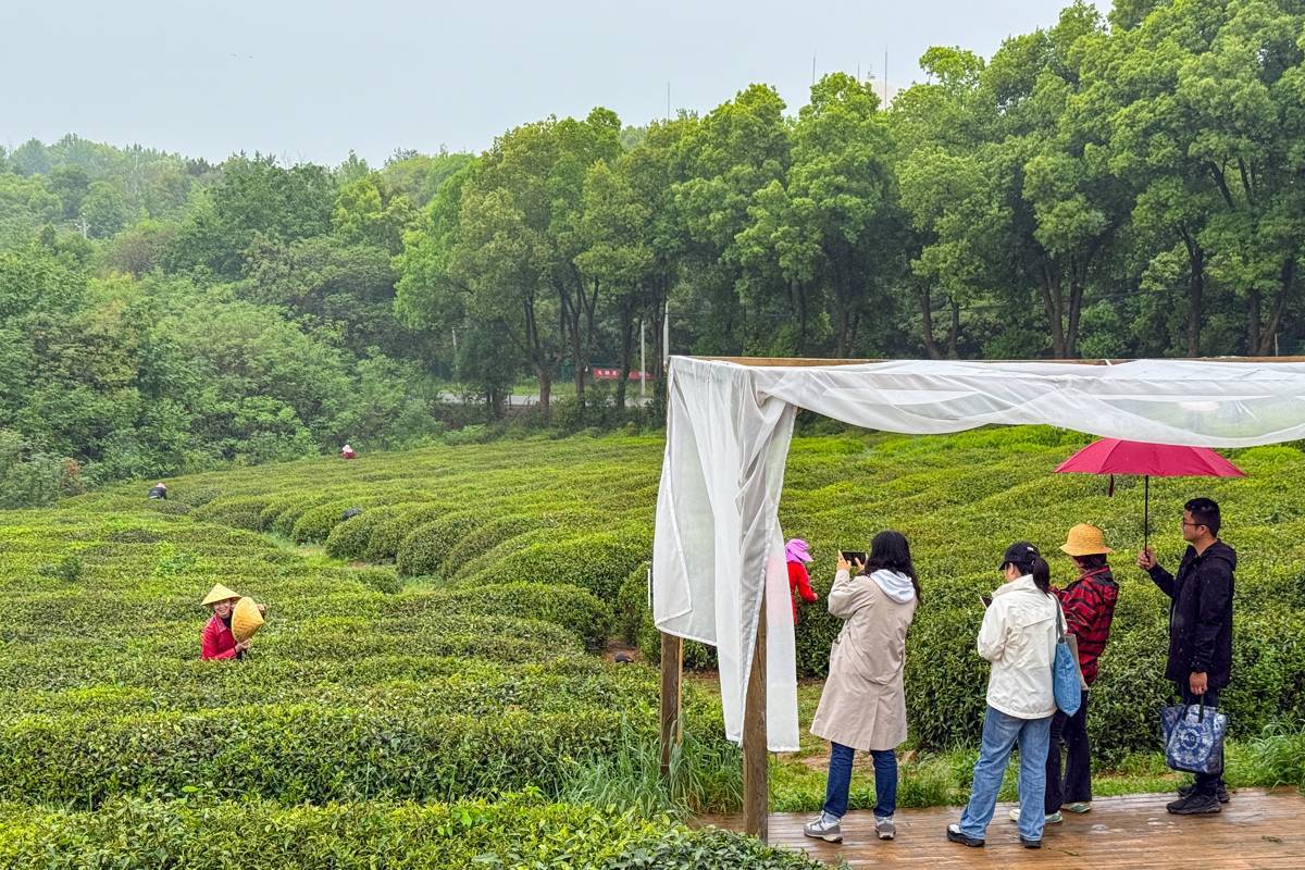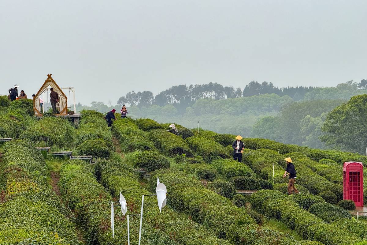 2026年4月16日,细雨霏霏,在武汉东西湖区柏泉茶园,依旧游人不绝。游客们在绵绵细雨中穿行茶田,体验采茶乐趣。非遗制茶、茶咖品鉴、柴窑DIY 等多元场景同步上演。这座由90 后创业者胡严飞深耕近十年的60年老茶厂,以“柏泉茶园”传统 IP➕“茶烟起”新潮IP破界,清明假期斩获武汉茶馆、咖啡销量双冠。“全龄层➕多体验”的创新模式,让雨天也挡不住打卡热情,成为武汉近郊文旅顶流。(湖北日报全媒记者 倪娜 通讯员 晏君 摄)