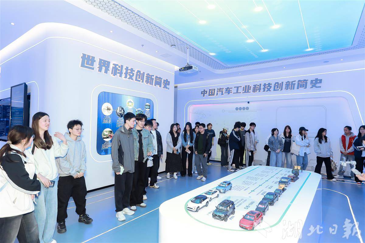 游客打卡湖北汽车工业学院“汽车科普科创基地”。(张湾区融媒体中心供图)