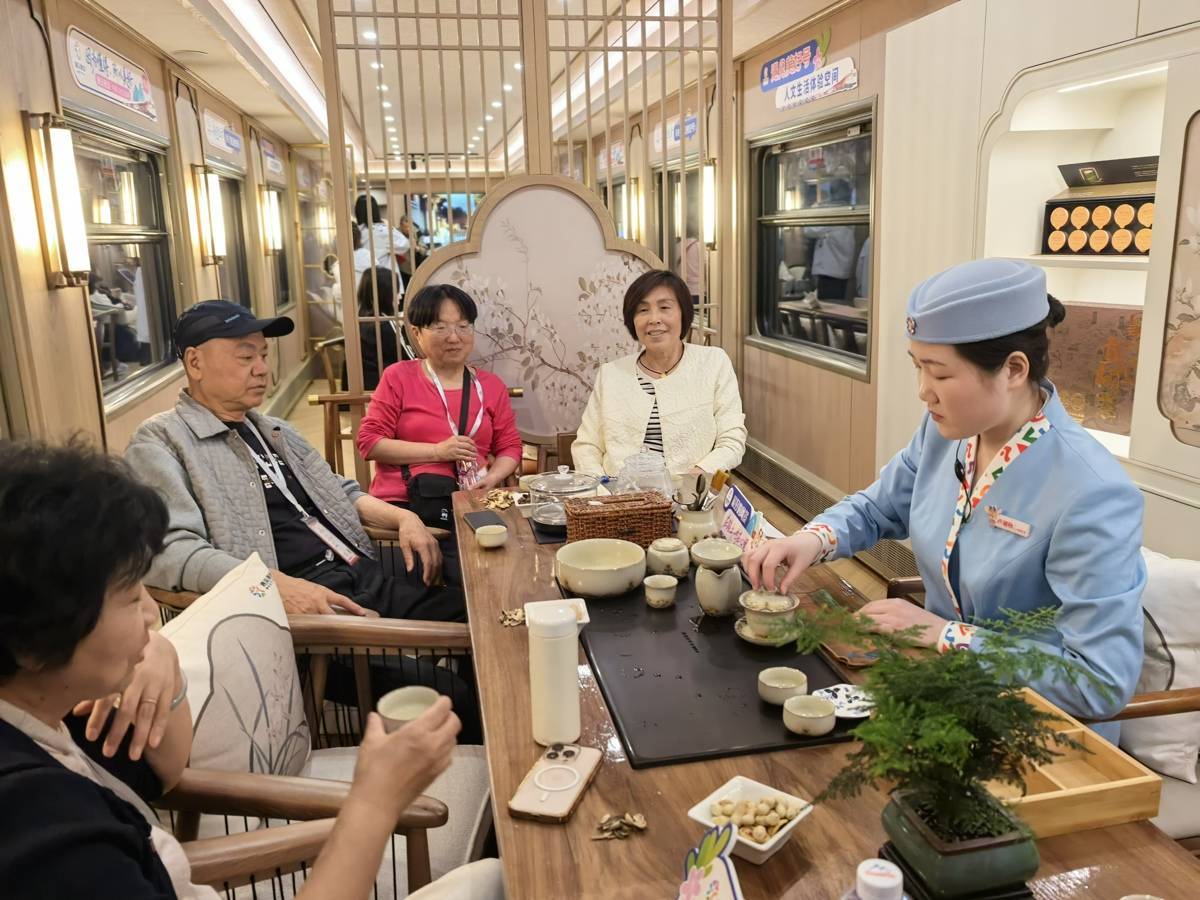 武汉武铁旅服传媒有限责任公司国际旅行社副经理姚思旭介绍:“专列打造了团圆茶话会、健康生活沙龙、非遗民俗手工体验三大特色车厢活动,就是为了让旅途更有文化温度。”在他看来,舒适型列车精准解决了老年人出行的痛点——身体适配、行程设计、贴心服务、情感陪伴。