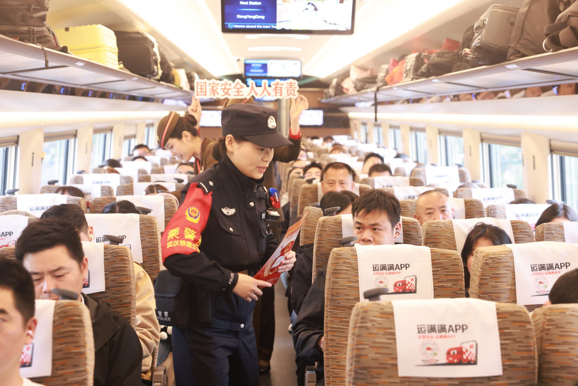 工作人员通过车厢宣讲、发放手册、现场答疑等形式,向旅客普及国家安全法规、铁路安全常识、反诈防骗及出行安全知识,引导大家自觉维护国家安全与铁路秩序。