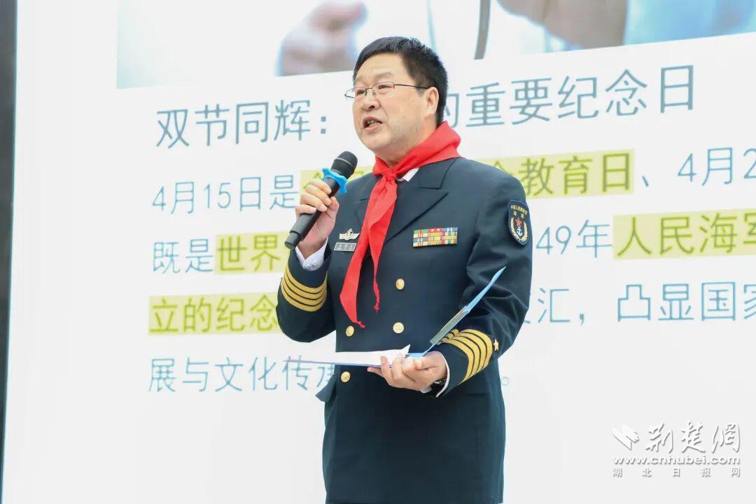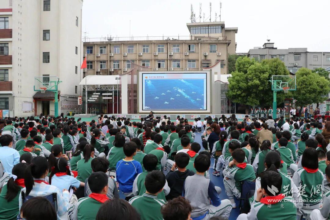 4月15日,武汉市军休八中心“戎耀童心”红色思政品牌走进武昌区未来实验小学(黄鹤楼)校区,以“海空使命·代际解码”为主题开展国防思政进校园活动。军休干部与中心青年干部一同为师生带来一场生动的红色思政课。