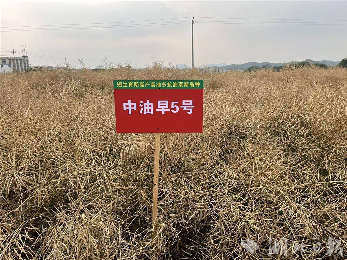 湖北日报讯(记者陈屿、通讯员顿小玲)4月15日,在江西省信丰县崇仙乡,由中国农科院油料所王汉中院士团队培育的特早熟高产高油油菜新品种“中油早5号”50亩示范片,经江西省农业技术推广中心组织专家现场鉴定,该品种采用一次性联合机收,亩产达201.96公斤,且全生育期仅166天,比国家攻关指标(生育期180天以内)缩短14天,创我国“稻-稻-油”三熟制油菜高产新纪录,标志着我国在破解南方双季稻区“粮油争地”矛盾、系统激活冬闲田潜力方面取得显著成效,昔日的“冬闲田”正加速转变为提供优质食用油的“健康油田”。