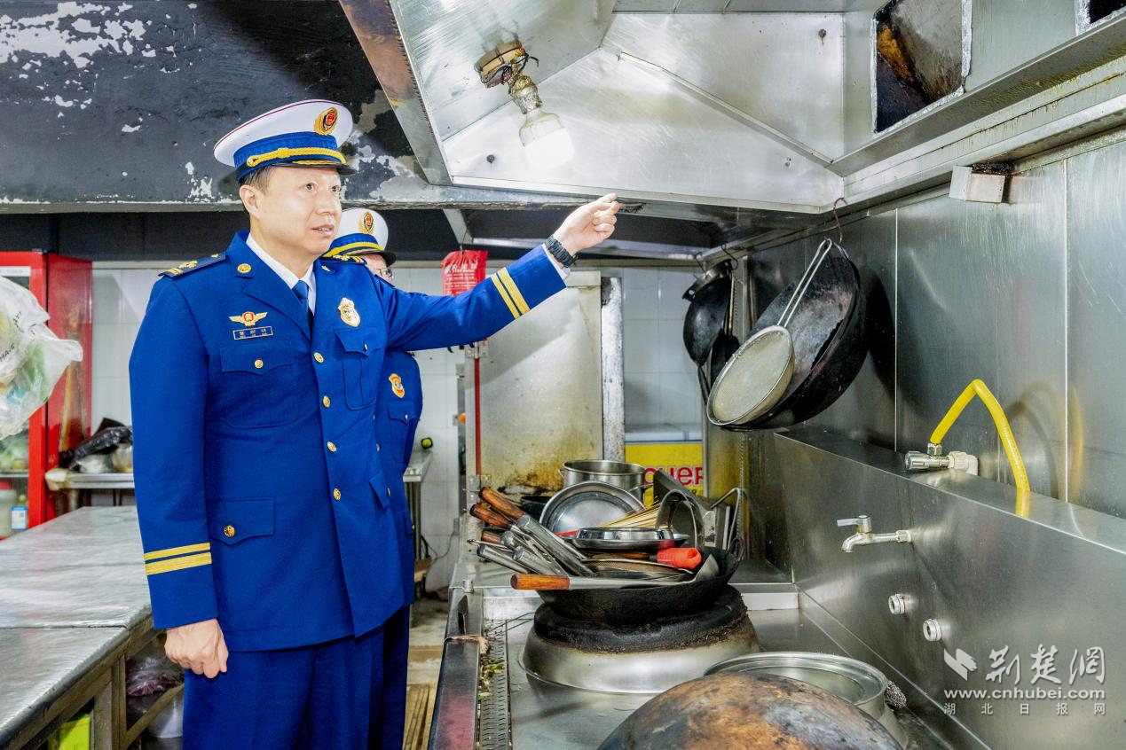 随后,调研组前往武昌区千家街街道千家街社区金涛铭座小区,重点对小区底商的餐饮场所进行了突击检查。他深入多家餐饮后厨,仔细查看燃气管道敷设、油烟管道清洗记录、灭火器材配备及员工消防安全“四个能力”掌握情况,叮嘱商户加强用火用电用气高峰期巡查,严防“小火亡人”。