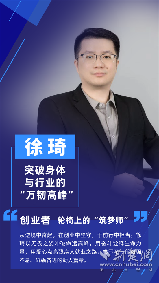 命运似乎在徐琦4岁那年和他开了一个残酷的玩笑,一场意外摔伤让他高位截瘫。然而,徐琦就像一颗顽强的种子,即便被巨石压着,也要努力冲破黑暗,向着阳光生长。他始终以乐观的心态积极面对生活,这份坚韧与勇气,让他在学业上取得了优秀的成绩,成功考入一所211本科院校。但因身体原因,徐琦仅入学一个月便被迫退学。不过,他并没有被打倒,凭借顽强毅力和对知识的渴求,他自学电脑维修技术,开起一家电脑配件小店,提供电子监控安装、电脑维修、网络布线等服务。