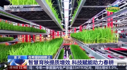 成都种业集团项目负责人 邓斌:循环式育苗设备,能确保秧苗24小时不间断生长,相对于传统的大田育苗,它能够节约土地80%,能够节约人工75%以上,育苗率能够达到98%以上。