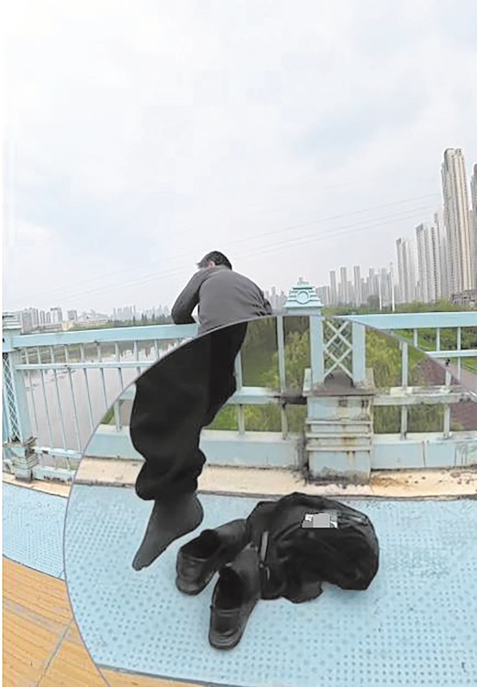 王先生回忆说,12日下午3时左右,他驾车经过古田桥,看到一男子趴在桥栏杆上,行为异常,靠近后发现对方试图翻越栏杆。于是他立即靠边停车,拉开车门一个箭步冲上去,抱住男子的肚子,对方还想继续翻栏杆,拉扯之间,两人都摔倒在地。扶起男子时,他看到对方在地上放了衣服、鞋子、眼镜、身份证、手机和钱包等个人物品。