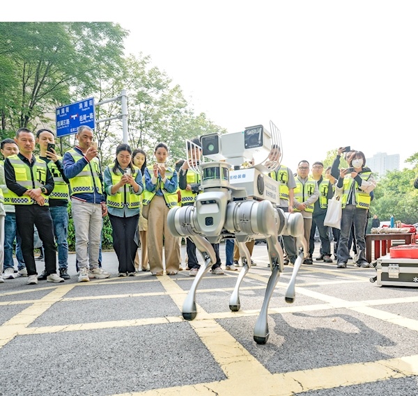 除了会飞的救生圈,另一款神器就是巡堤查险机器狗,堪称防汛人员的得力帮手。它行动敏捷,能适应各种复杂地形,不管是堤坝上的小石子路、泥泞路段还是陡坡,都能稳稳行进。它的“眼睛”特别尖,利用红外热成像+视觉融合检测原理,能在水坝坝顶自动实现巡检,对坝体裂缝、伸缩缝异常等隐患进行智能识别,任何细小的问题都难逃它的法眼。