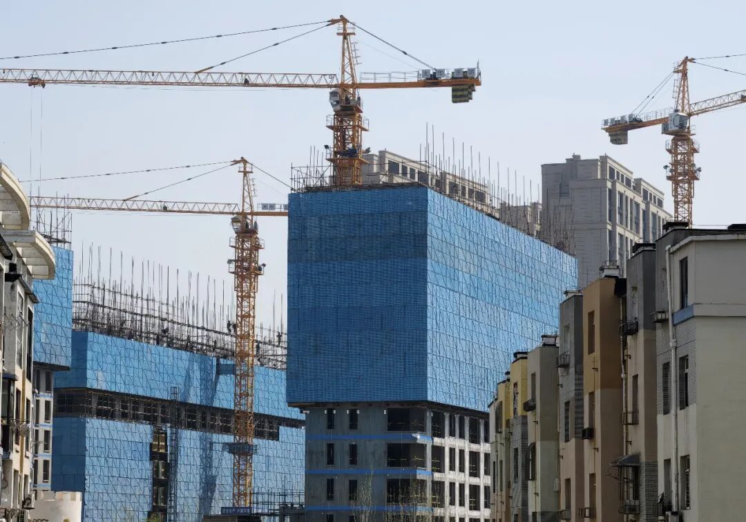 工人们在辽宁大连市甘井子区泉水街道一处工地忙施工。(刘德斌/人民图片)