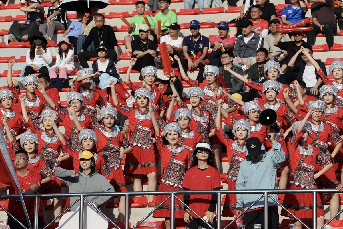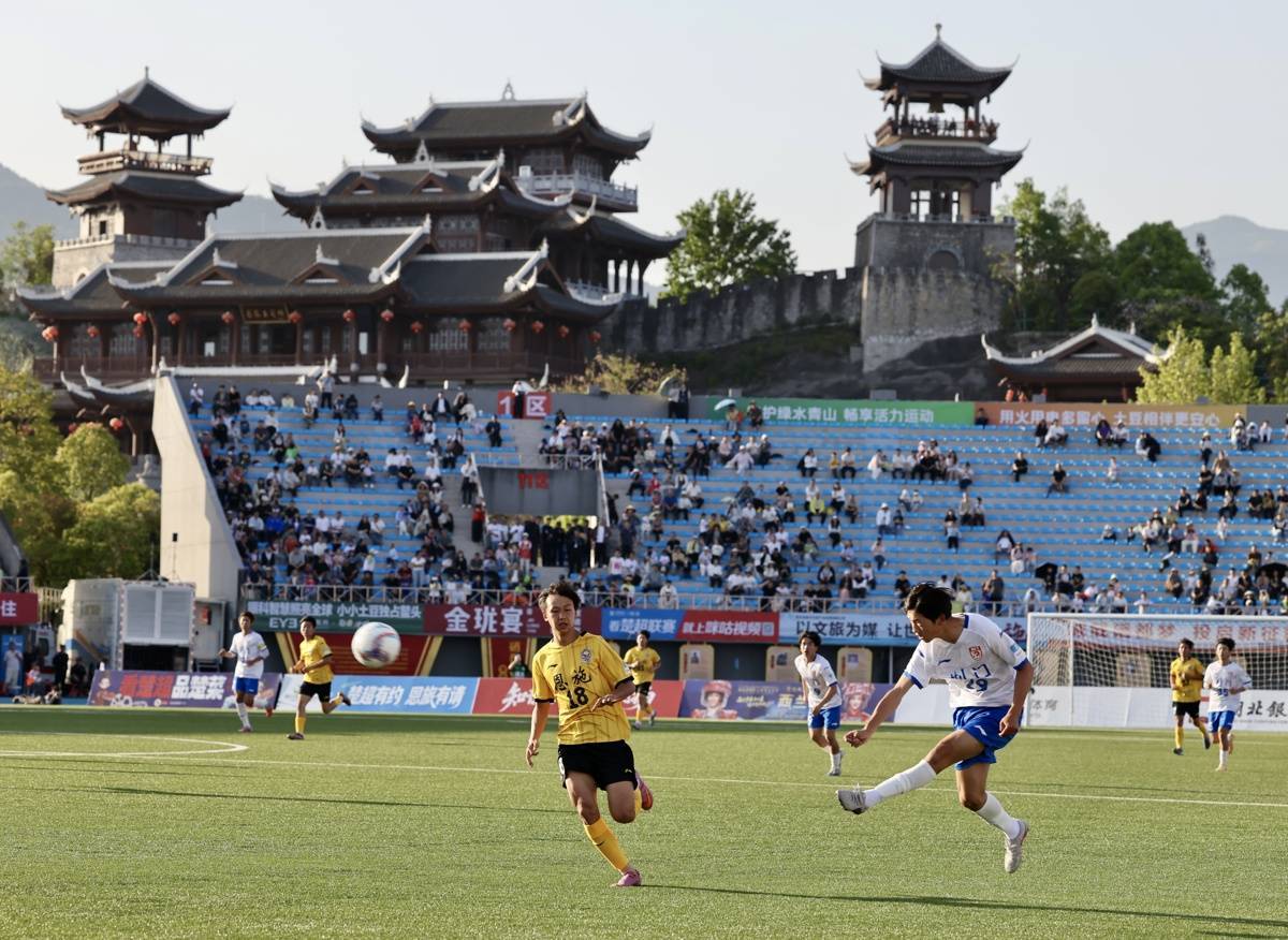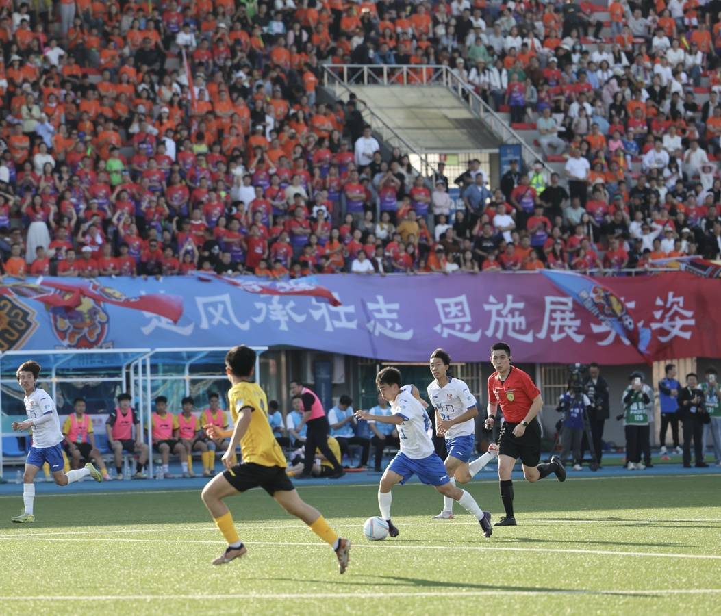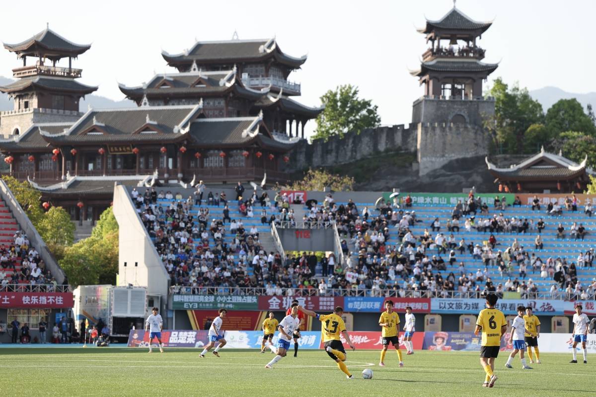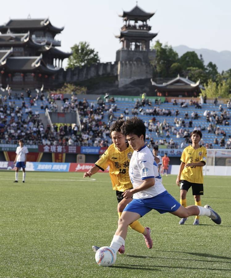 4月18日下午,湖北银行2026年湖北省城市足球联赛(简称“楚超”)恩施赛区首战激情开赛,恩施小土豆队主场迎战荆门金龙泉队。经过90分钟的激烈角逐,恩施小土豆队以1:3憾负对手。现场涌入了15000余名球迷,热烈氛围点燃了武陵山城的似火激情。(湖北日报全媒记者 李溪 摄)