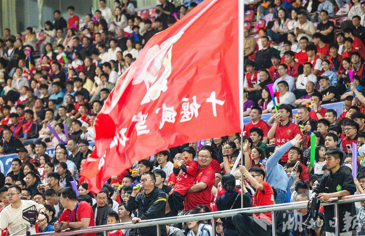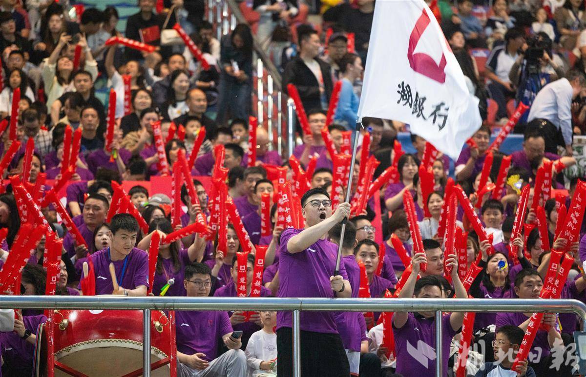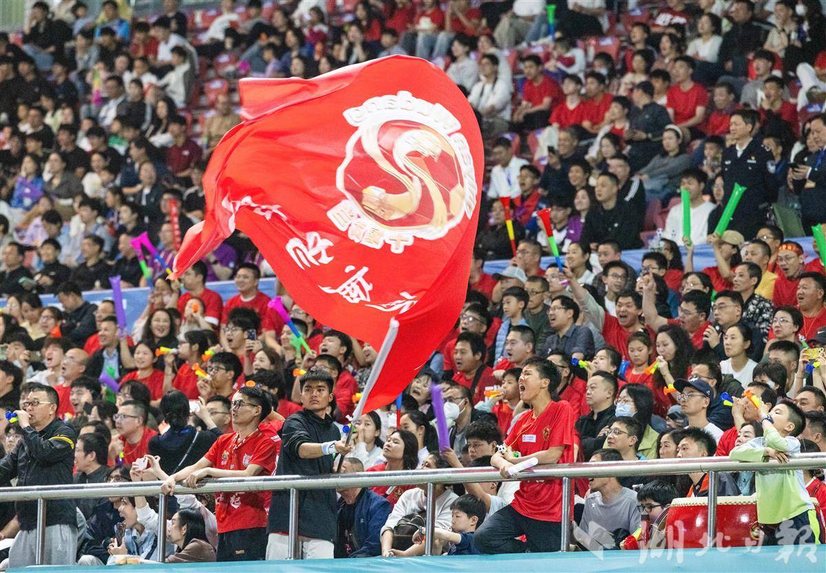 4月19日,武汉华工科技队首次亮相“楚超”,对阵十堰武当队。图为球迷现场呐喊加油。