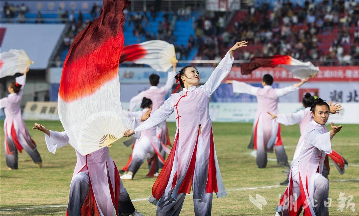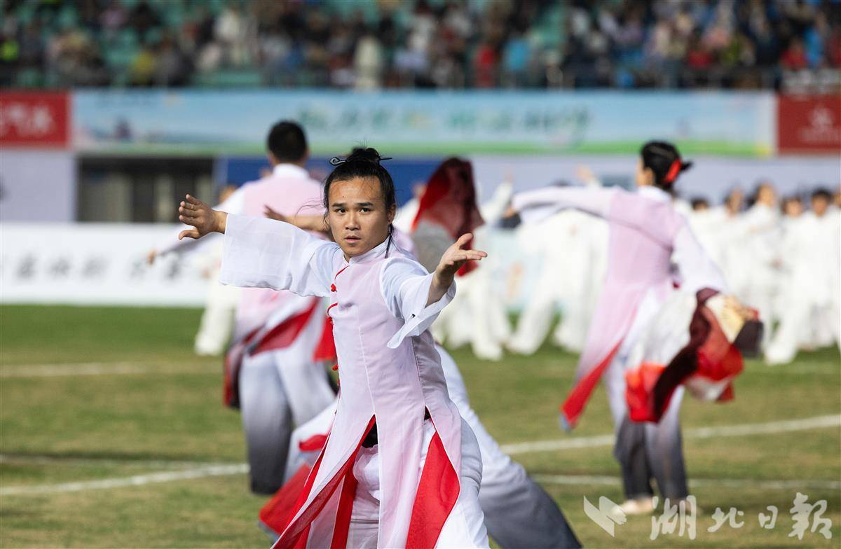 4月19日,武汉华工科技队首次亮相“楚超”,对阵十堰武当队。图为比赛前太极节目表演。