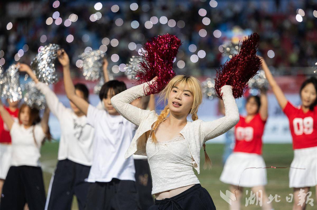 4月19日,武汉华工科技队首次亮相“楚超”,对阵十堰武当队。图为比赛前表演。