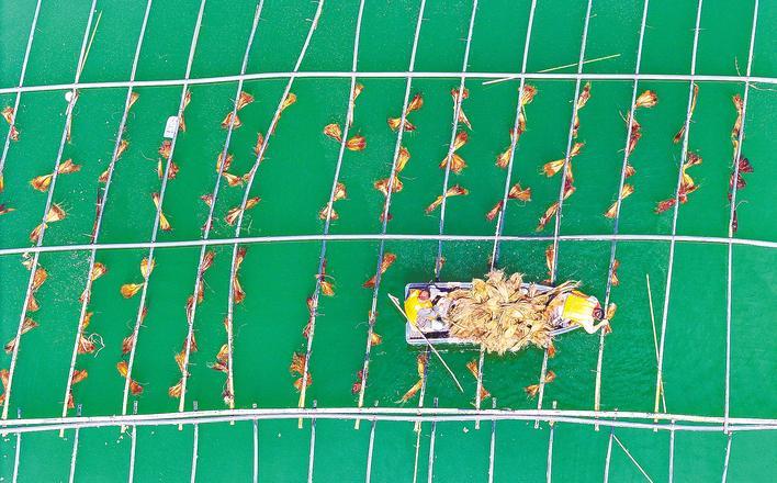 4月17日,十堰市郧阳区柳陂镇郧阳湖国家湿地公园内,村民正在为野生鱼类搭建人工鱼巢。郧阳湖国家湿地公园地处南水北调核心水源区,为修复汉江野生鱼类繁殖环境,近年在库区库汊大规模搭建人工鱼巢,为鲤鱼、鲫鱼、翘嘴鲌等鱼类搭建“水上产房”,提供安全适宜的产卵、孵化及育幼场所,保障库区生物多样性与水质稳定。(视界网 周家山 摄)