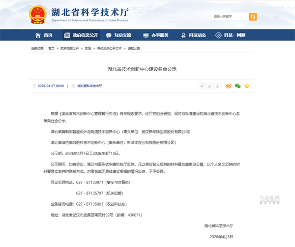荆楚网(湖北日报网)讯(通讯员 望亚男)近日,湖北省科学技术厅公布省技术创新中心建设名单,由武汉新华扬生物股份有限公司牵头、湖北农发集团旗下湖农发畜牧集团参与共建的“湖北省酶制剂智能设计与制造技术创新中心”正式获批建设。这是农发畜牧集团深化产学研协同创新、强化畜牧产业链科技支撑的重要成果,标志着集团在推动畜牧业绿色化、智能化发展上取得新突破。