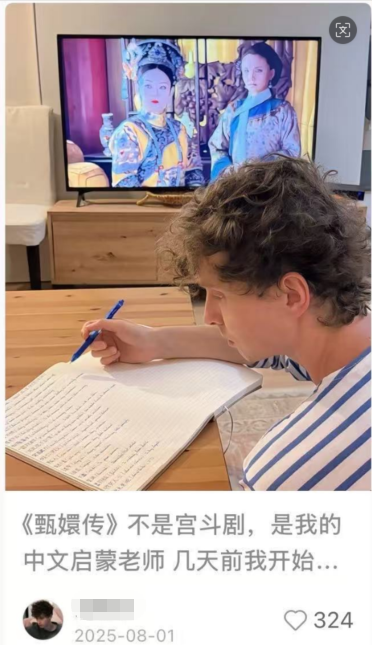 小红书外国博主发帖:一边看《甄嬛传》,一边埋头记笔记。