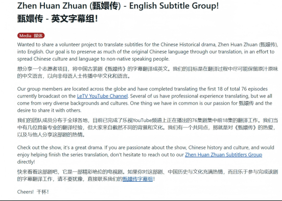 甚至,有人为《甄嬛传》专门组建英文字幕组,招募志愿者共同探讨最恰当的译文。