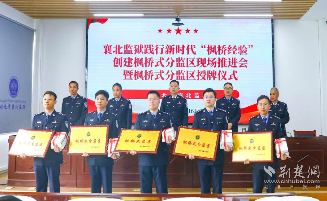 荆楚网(湖北日报网)讯(通讯员 晏中华、彭斌)4月16日,襄北监狱举行践行新时代“枫桥经验”创建枫桥式分监区现场推进会暨授牌仪式,监狱党委书记、监狱长黄浩,党委副书记、政委刘景出席活动。各监区、各科室负责人及民警代表参加活动。