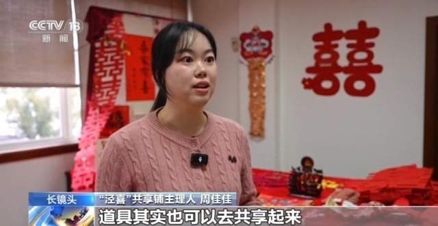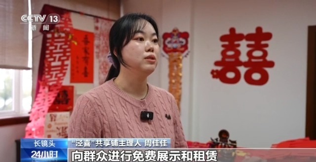 “泾喜”共享铺主理人 周佳佳:婚房喜事、接亲道具,向群众免费展示和租赁。