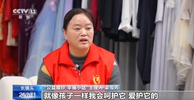 “公益婚纱 幸福小站”主理人 梁雪芳:其实每一件婚纱我都非常有感情,就像孩子一样,我会呵护它、爱护它。我就生怕哪里弄坏了,下一个人就不能借了。