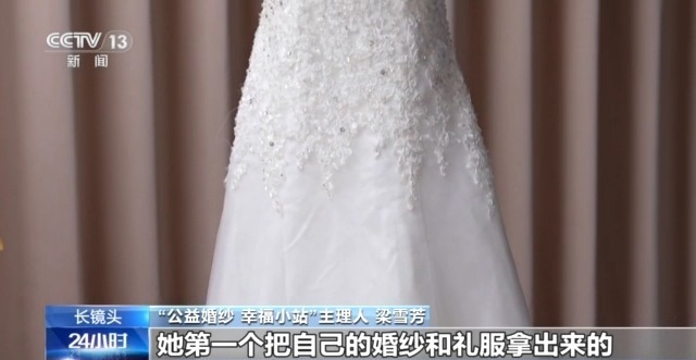 “公益婚纱 幸福小站”主理人 梁雪芳:我儿媳妇第一个把自己的婚纱和礼服拿出来,然后我在朋友圈里发了以后,有好多小姐妹家里也有婚纱,就这样陆陆续续来了。