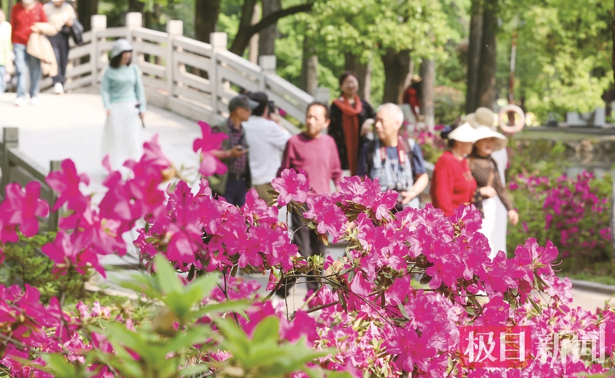 近日,武汉青山公园第十五届杜鹃节正式拉开帷幕。园内近70个品种、10万余株杜鹃花进入盛花期,汇聚成一片绚丽花海。该园杜鹃包括春鹃、夏鹃、东鹃、西鹃四大品系,眼下盛开最多的是春鹃。