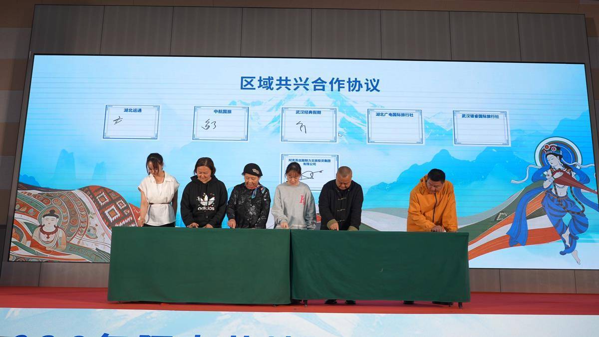 天山南麓千年龟兹古乐,与荆楚大地悠扬编钟古韵交相辉映;奔放灵动的刀郎歌舞,婉转雅致的汉剧楚腔相得益彰,绘就各民族文化交融共生的动人画卷。活动现场,阿克苏文旅企业与湖北旅行社、文旅机构签订14项文旅合作协议,覆盖客源互送、精品线路开发、全域宣传推广等多个领域。