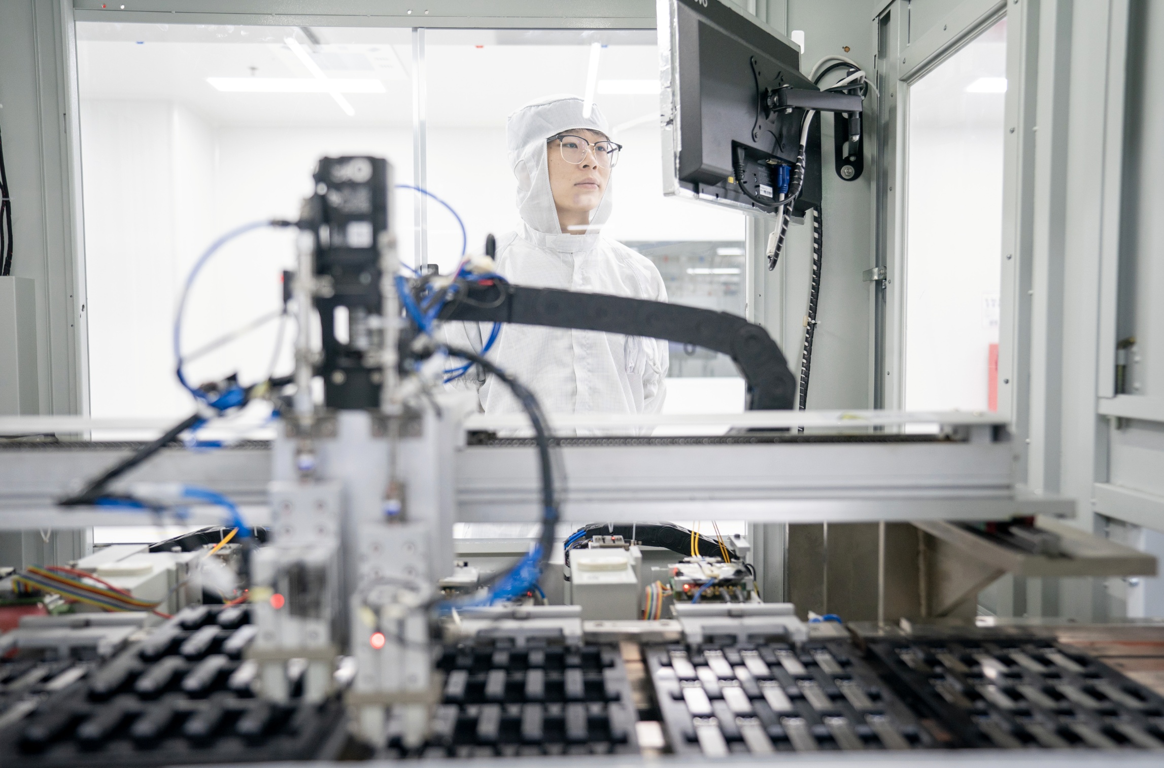 华工科技光电子信息产业研创园洁净厂房,正在生产高速光模块(魏铼|摄)