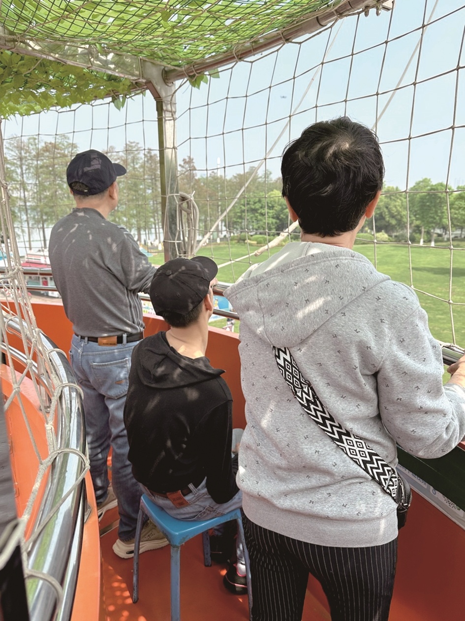 岳先生家住汉口,过去,他必须等父母有空时推着轮椅才能来绿道。后来有了残疾人代步车,他便可以随时一个人骑过来,“沿着湖边转,蛮舒服的感觉”。