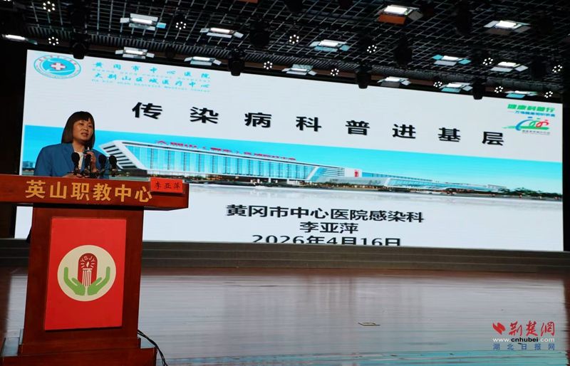 荆楚网(湖北日报网)讯(通讯员李晶)4月16日,黄冈市疾控中心联合英山县疾控中心组织多领域医疗专家走进英山县职教中心,开展以“健康同行,快乐相伴”为主题的医防融合健康服务暨健康科普巡讲进基层活动。活动以“讲座+咨询+体验”的模式,为该校高二年级400余名师生送上了一场干货满满的健康科普课。