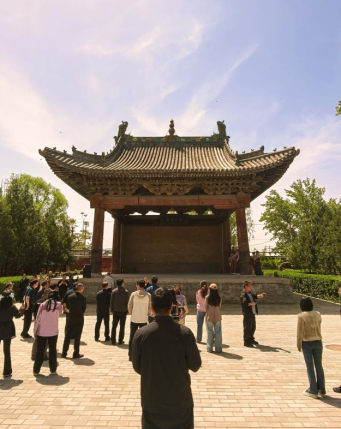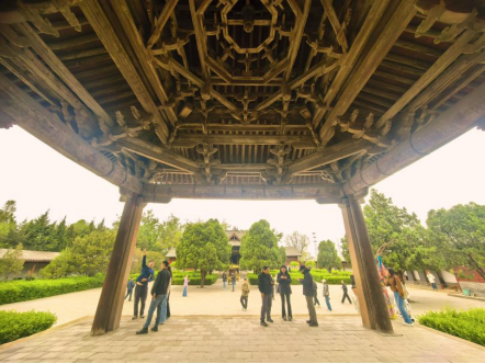 在临汾,采风团还参观了一座特别的戏台——襄汾县汾城古建筑群城隍庙戏台,和它毗邻的是游戏《黑神话:悟空》的取景地鉴察坊。这座戏台主体建构为明代所建,系重檐歇山顶的过路式戏台,设计独特,上为舞台,下为人行通道,全国重点文物保护单位。其观众区的地面是我国唯一保存较完整的地面铺设,是研究古代戏曲发展的珍贵实物。