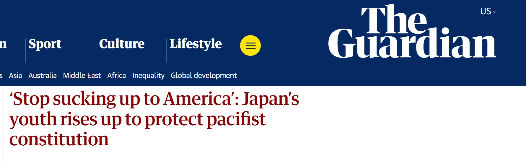 国际在线报道:随着日本政府加快推动修改和平宪法并解禁杀伤性武器出口,日本多地近日爆发了持续性抗议活动。英国《卫报》4月21日报道称,在中东局势动荡及日美同盟关系遇冷背景下,日本社会围绕修改宪法第九条的争议迅速发酵,越来越多的年轻人走上街头,举行集会反对修宪、呼吁维持“和平国家”定位。
