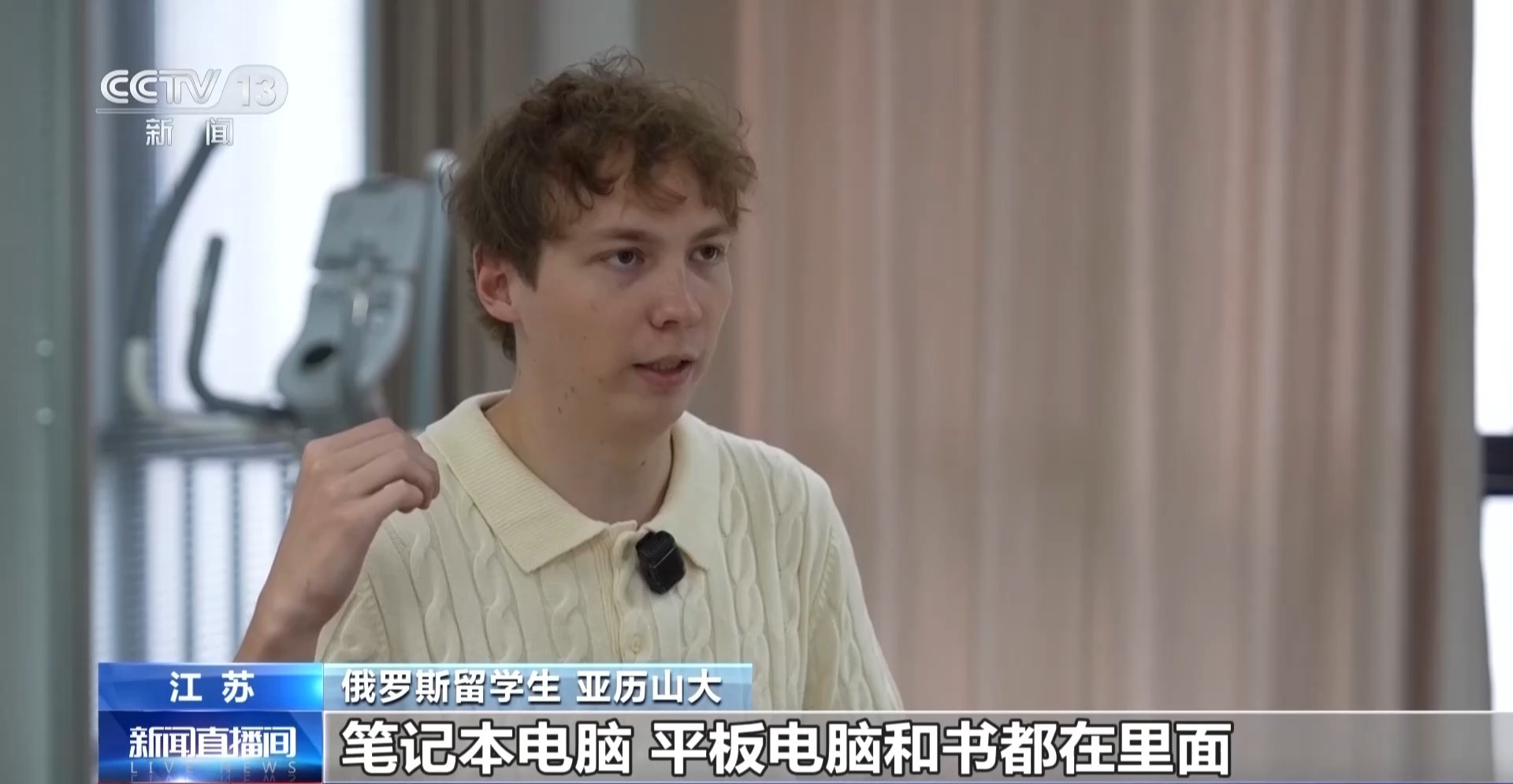 俄罗斯留学生 亚历山大:两年前我丢了背包,三天后朋友在原处找到,笔记本电脑、平板电脑和书都在里面。