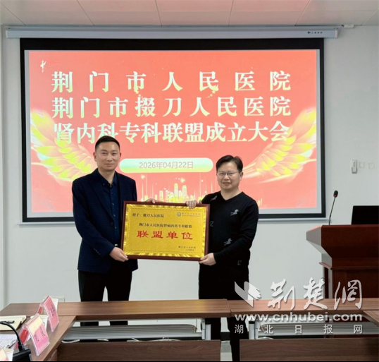 荆楚网(湖北日报网)讯(通讯员 易静 孙梦)为推动优质医疗资源下沉,提升基层肾病诊疗服务能力,切实落实分级诊疗制度,4月22日,荆门市人民医院与荆门市掇刀人民医院肾内科专科联盟成立大会在掇刀区人民医院顺利召开。两院领导、肾内科核心团队及相关科室负责人共同出席,见证这一医疗协作重要时刻。