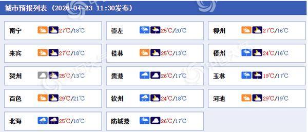 根据预报,今天夜间到26日,广西仍有降雨。广西气象台预计,今天夜间到明天白天,玉林、北海、百色等市有小到中雨,局地大雨或暴雨;其它地区阴天到多云,有分散阵雨。