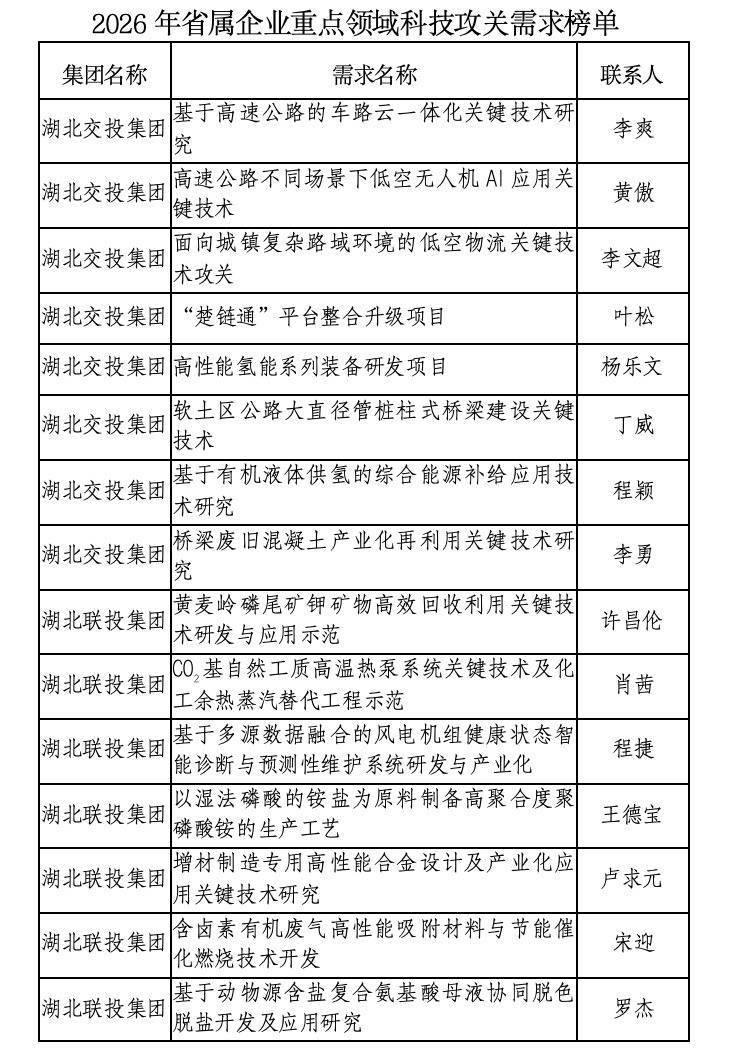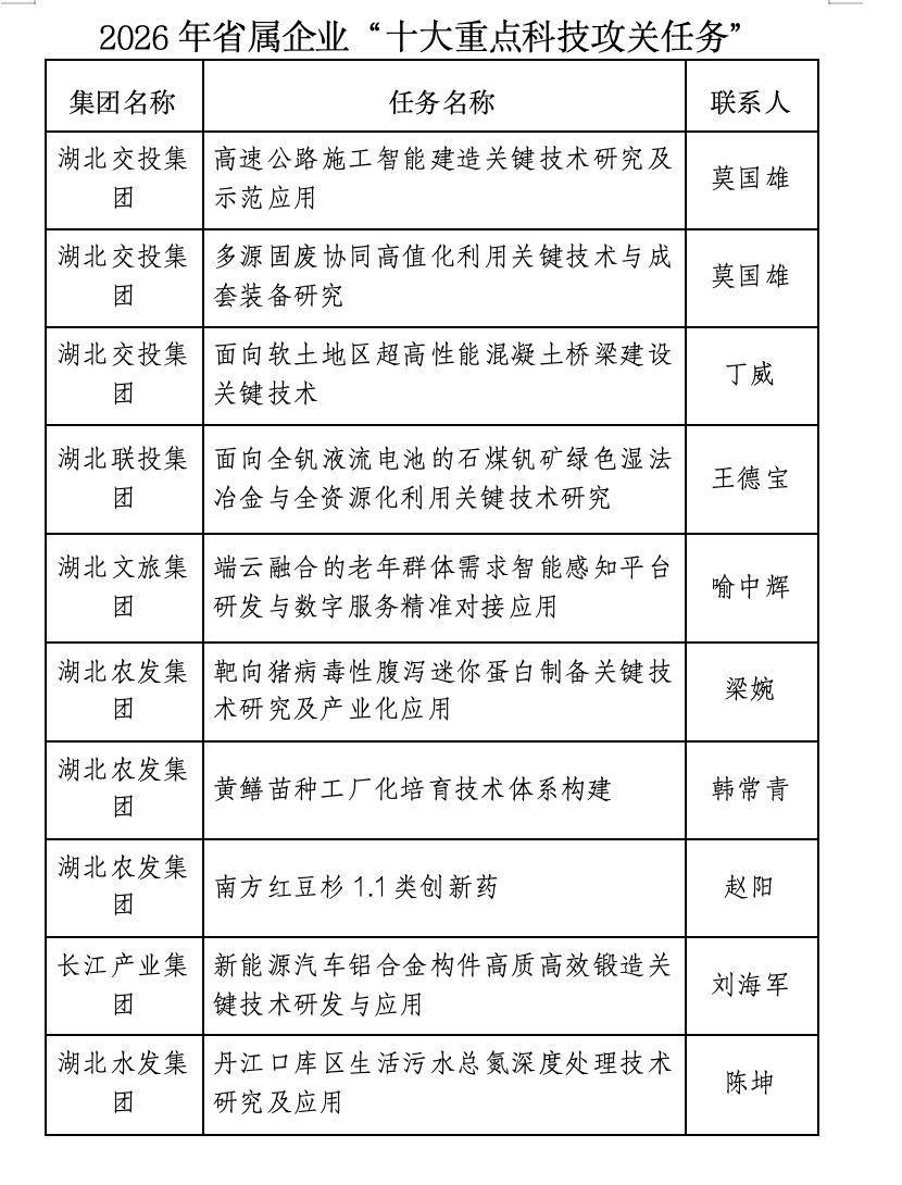 2026年省属企业“十大重点科技攻关任务”和重点领域科技攻关需求榜单发布。