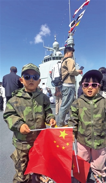 身穿迷彩服的小朋友登舰参观 摄影:楚天都市报极目新闻记者柳琛琛