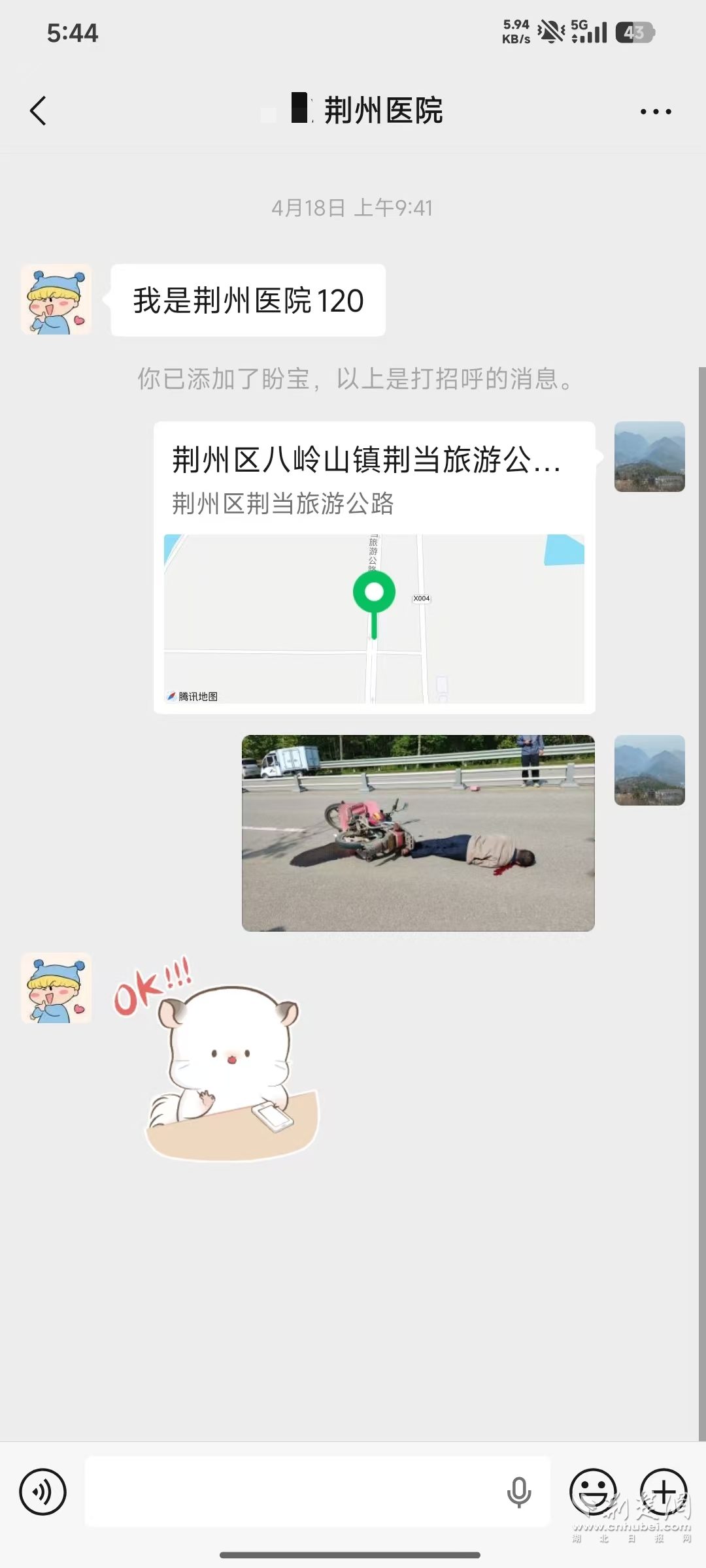 原来受伤男子今年58岁,家住荆州区川店镇龙山村一组,在骑车回家途中不慎撞上公路护栏导致车辆失控,头部重重摔倒着地,鲜血直流。