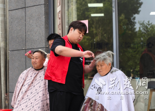 活动现场暖意融融、温情涌动,各类便民服务有序铺开,每一个角落都洋溢着浓浓的关爱气息。免费义剪区前,老人们有序排队、轻声交谈,理发师们耐心细致,一边询问老人的喜好,一边根据老人的脸型、发质精心设计发型,推子、剪刀在指尖灵活运转,娴熟的技艺让老人们瞬间清爽焕新。