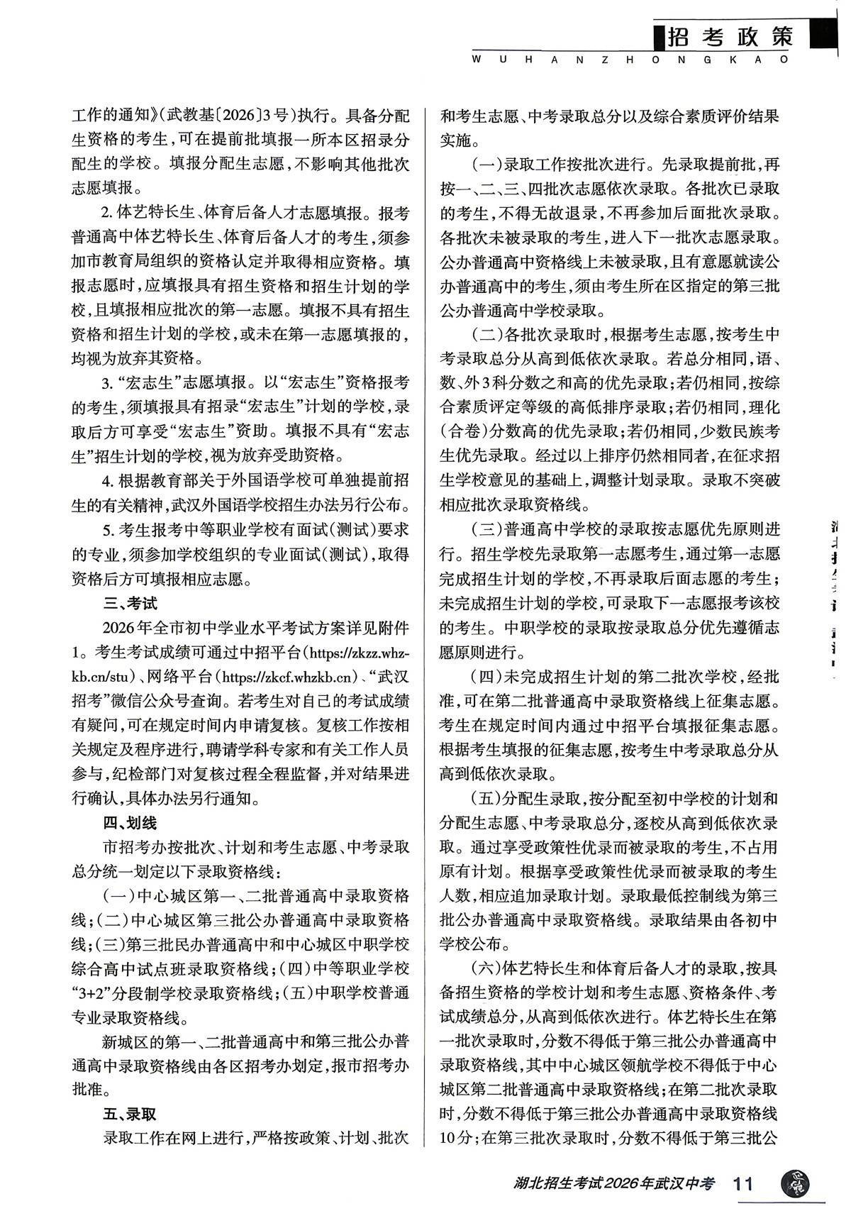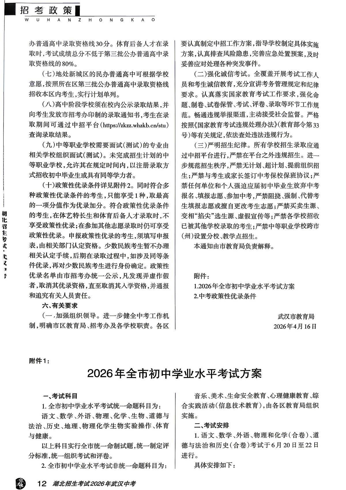 湖北日报讯(记者张倩倩)4月24日,武汉中考招考政策发布。据悉,今年武汉有10.6万考生报名参加中考,普高招生计划85249人,80%以上的考生可以读普高。相比去年,今年武汉中考招考政策有一些优化。