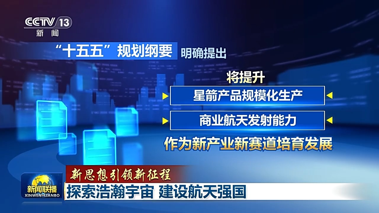 “十五五”规划纲要明确提出加快建设航天强国。将提升星箭产品规模化生产和商业航天发射能力作为新产业新赛道培育发展。将构建空天地一体、通导感算融合的综合服务体系作为新型基础设施建设的重点任务。将行星探测、月球探测等纳入前沿科技攻关项目。