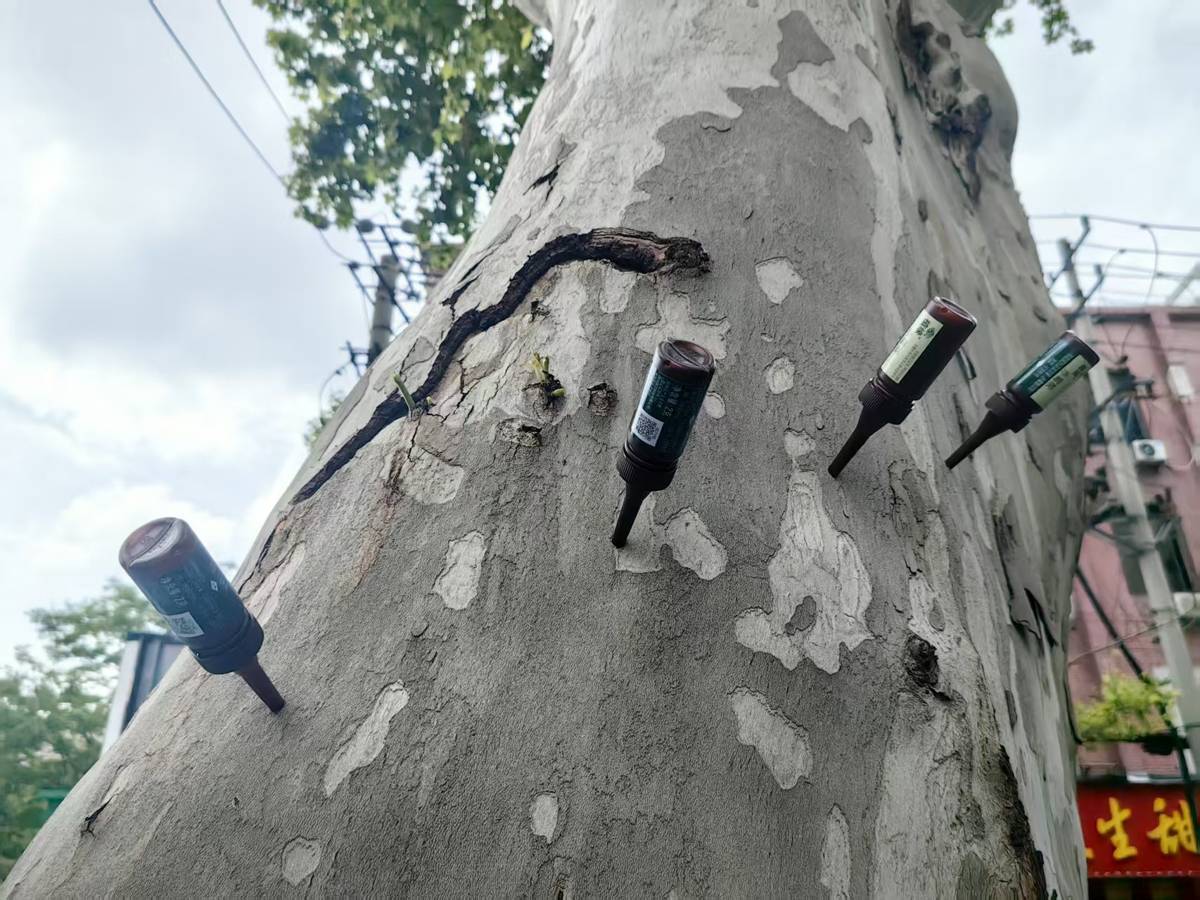 现场不少附近居民好奇凑近查看,得知这是给法桐“打针”治飞絮后,纷纷表达期待,为城管的新尝试点赞。李凯补充道:“今年‘打针’,明年和后年效果最明显。”