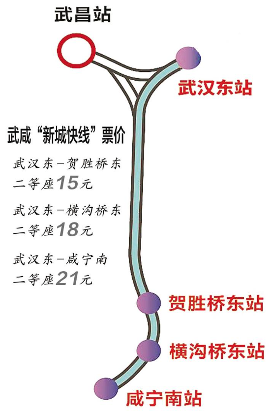 武咸“新城快线”从武汉东站始发,终点是咸宁南站,沿途停靠贺胜桥东、横沟桥东等站点。湖北铁路运营公司相关负责人介绍,除了班次密集、票价亲民外,与咸宁北站相比,咸宁南站离咸宁市区更近,更方便群众出行。