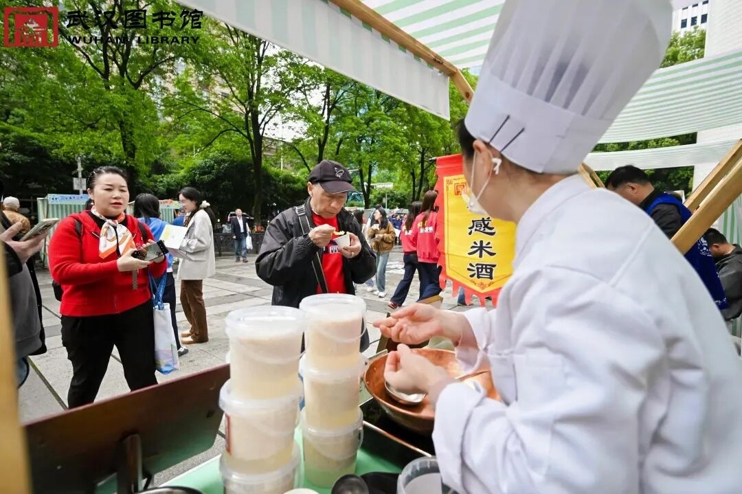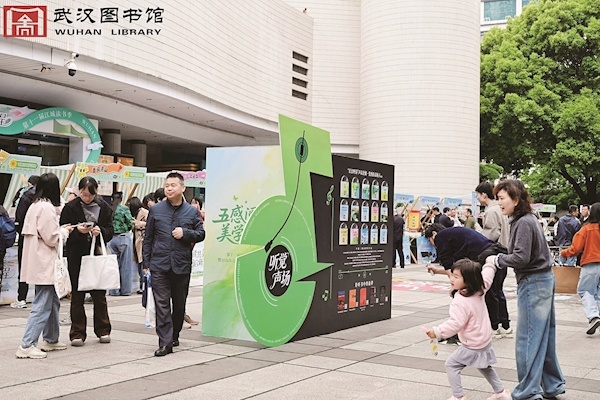 市集内,五感体验空间层层递进。听觉声场中,“长江听涛”长江主题朗读作品扫码即可聆听,该征集活动自4月10日启动,将持续至6月30日,邀请全民用声音致敬长江;视觉展廊内,“刊见生活之美”期刊展与武汉百年老字号专题展同步开展,老银楼、老药铺等老物件与旧文献铺展江城百年生活画卷;味觉书房与嗅觉花园里,市民品茗闻香,在茶香与花香中翻阅相关书籍,享受闲适阅读时光;触觉工坊内,植物拓染、非遗手工、写扇画扇等活动轮番开展,让市民在动手实践中感受传统文化魅力。
