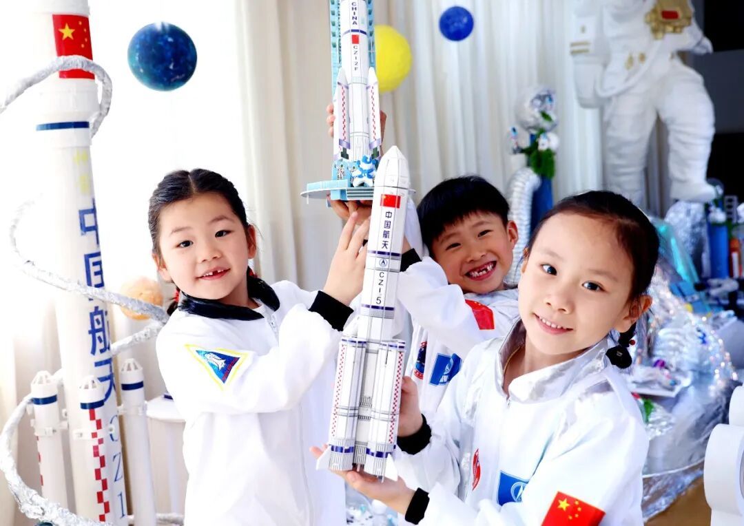 4月20日,浙江杭州市丁信幼儿园开展以“逐梦航天 童心向未来”为主题的航天节活动。周方玲摄