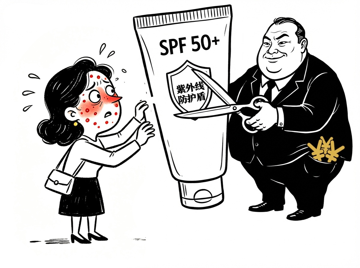 那么,为什么防晒产品容易虚标防晒、偷工减料?一名不愿透露姓名的三甲医院皮肤科专家介绍,这或与利益驱动密不可分。数据显示,对于防晒产品而言,防晒剂的成本占原料成本的三成左右,且部分防晒剂单价偏高。一些不法厂商,刻意减少甚至不添加注册载明的防晒剂,用廉价填充物替代,就是旨在降低生产成本、追求高利润;根据《化妆品监督管理条例》等相关规定,防晒产品中的防晒剂,如果种类、含量变动需重新注册,但不少企业存在侥幸心理,认为自己不一定会被抽检到,因此偷偷减少防晒剂种类、换廉价防晒剂等;还有一些生产企业存在技术短板、质控缺失等问题,这也容易导致防晒剂含量不达标。