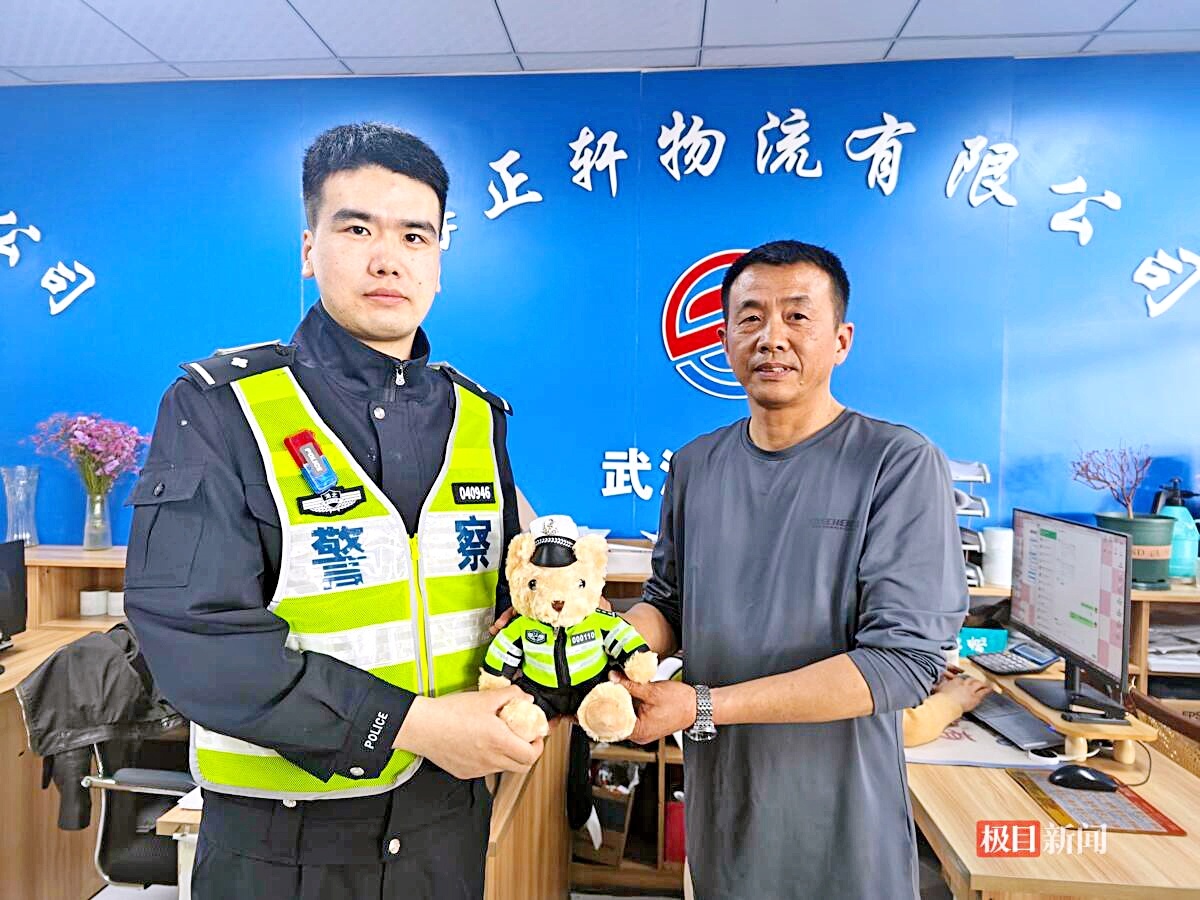 警方给货车司机送小熊玩偶