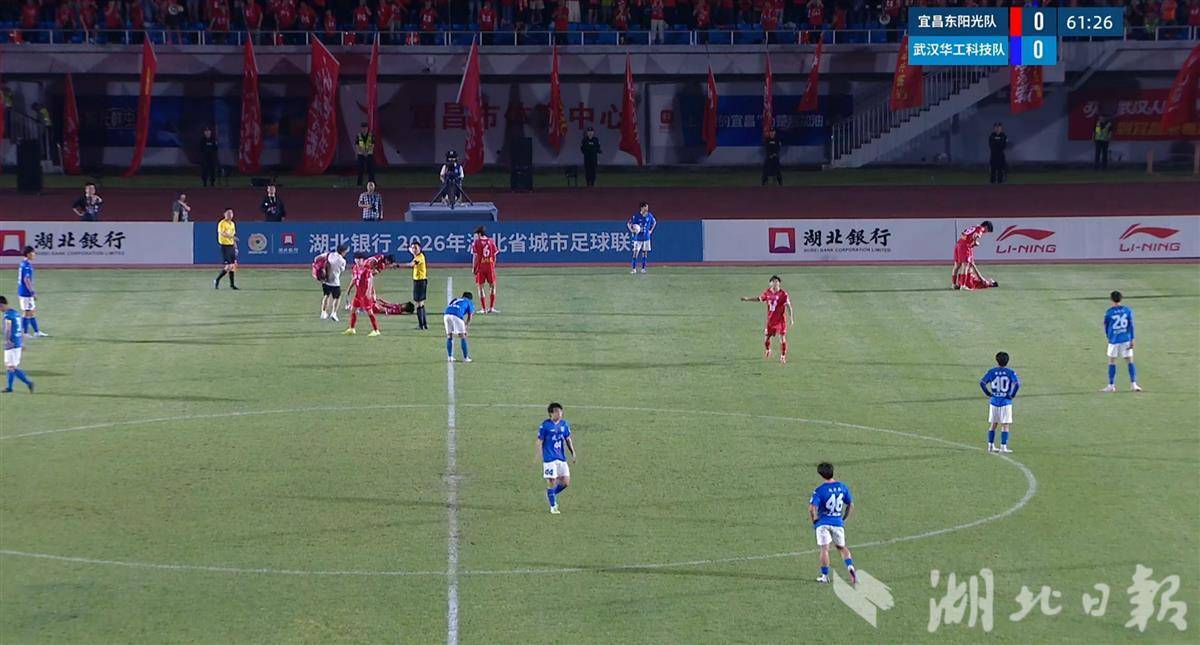比赛进行至61分钟,宜昌队两名球员同时腿部抽筋。