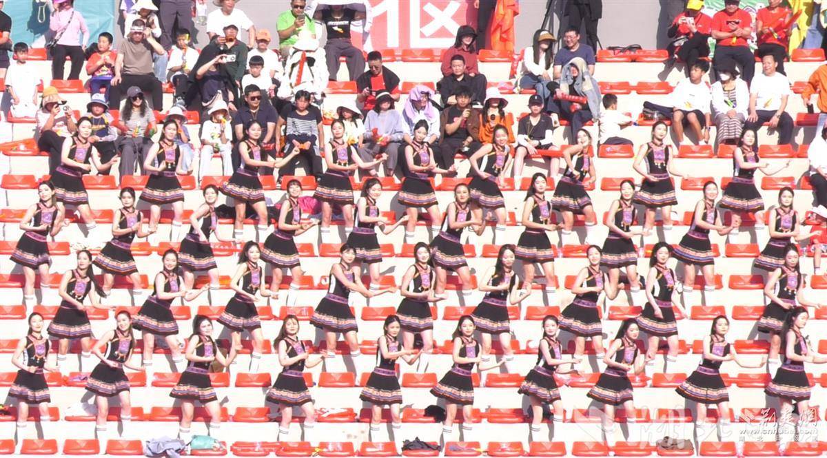 恩施啦啦队在看台跳起土家舞。(图片来源:荆楚网)