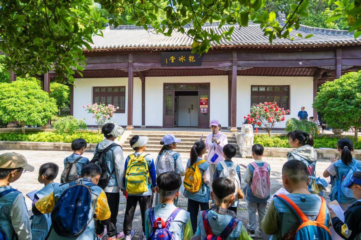 抱冰堂前,孩子们齐声朗读张之洞撰写的名联:“昔贤整顿乾坤,缔造多从江汉起;他日交通文轨,登临不觉米欧遥。”